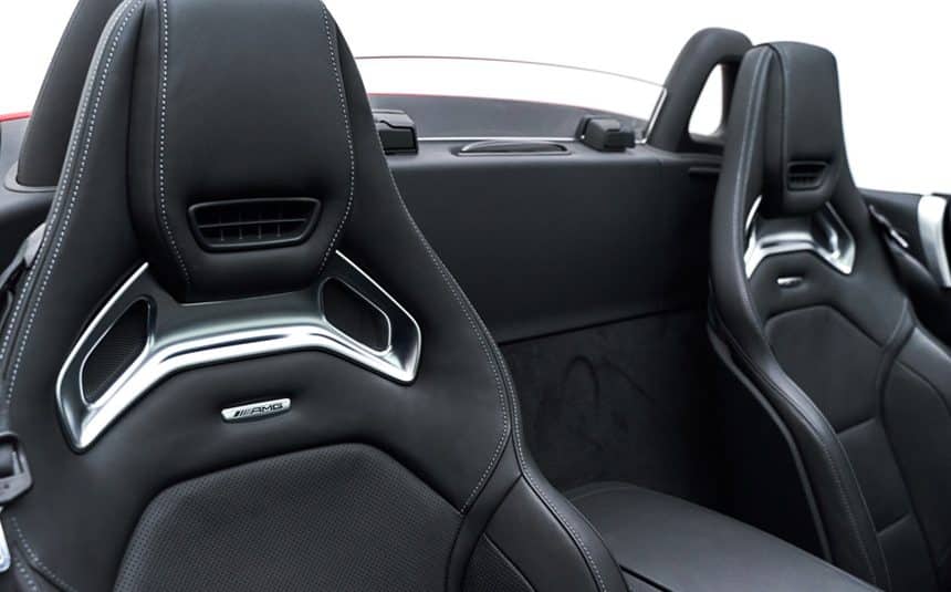 The AMG GT C Roadster in selenite grey — an open-top 557hp biturbo V8 grand tourer with the wider bodywork, rear-wheel steering, and active aero of the GT R. Top-down performance.